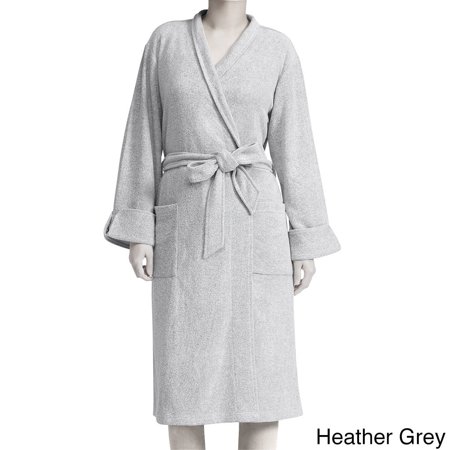 Relax at home in the Premier Comfort Heathered rayon blend robe. It is soft with terry loop at face and brushed fleece inside for plush comfort. Featuring a self-fabric belt and two front patch pockets, this is a perfect all-season year round robe. . <br /> <br /> <ul> <li>Color options: Heather grey, heather khaki</li> <li>Materials: 68-percent rayon/ 32-percent poly terry 260gsm (heather terry)</li> <li>Care instructions: Machine washable</li> <li>Pattern: Solid</li> <li>Length: S/M (Size 2-8): 43.5 inches long; L/XL (Size 10-16): 44.5 inches long</li> <li>Belt: Attached loop at center back waist, self-fabric belt</li> <li>Pockets: Two front patch pockets</li> <li>Sleeves: Cuffed sleeves</li> </ul> <br /> <b>Pant Details</b> <br /> <br /> <ul> <li>S: Waist extended 38 inches; Hip 38 inches; Inseam 30 inches</li> <li>M: Waist extended 39 inches; Hip 39 inches; Inseam 30.25 inches</li> <li>L: Waist extended 40 inches; hip 40 inches; Inseam 30.5 inches</li> <li>XL: Waist extended 41 inches; hip 41 inches; Inseam 30.75 inches</li> </ul> <br /> <a href="http://www.overstock.com/sizing.html#modern">Click here to view our women's sizing guide</a> <br /> <i>The digital images we display have the most accurate color possible. However, due to differences in computer monitors, we cannot be responsible for variations in color between the actual product and your screen.</i> <br />