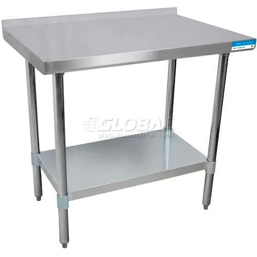 BK Resources 430 Stainless Steel Table, 36 x 24", Galv. Undershelf, 1-1/2" Backsplash, 18 Gauge