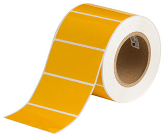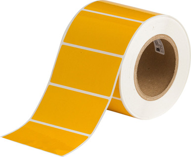 Brady, THT-55-423-1-YL, 132417 2" x 4" Yellow WorkHorse Glossy Polyester Label, 3" Core This B-423Y material is ideal for use in electronic PCB and component identification, bar code label and rating plates. Glossy yellow finish with permanent acrylic is thermal transfer printable. UL recognized. Service temperature of -94 to 230 Degree F (-70 to 110 Degree C).