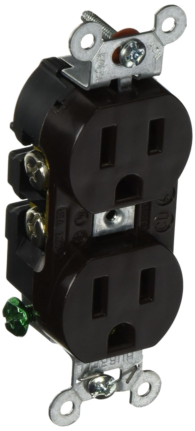 Hubbell 5252AB Receptacle, Duplex Straight Blade, Hubbel-Pro, 15A, 125V, SF, Brown