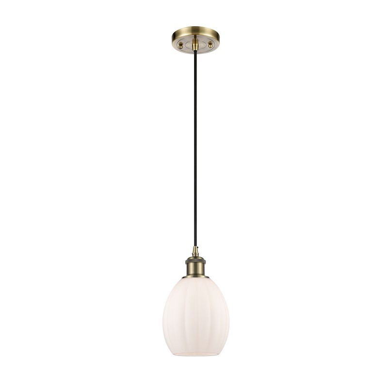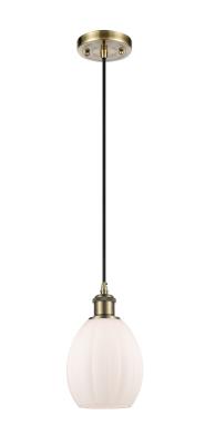 INNOVATIONS LIGHTING 516-1P-AB-G81 BALLSTON EATON 6 INCH ONE LIGHT MATTE WHITE MINI PENDANT, ANTIQUE BRASS, INCANDESCENT