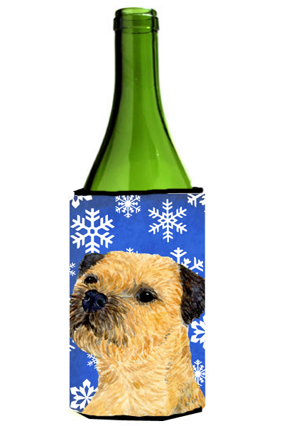 Caroline's Treasures LH9278LITERK Border Terrier Winter Snowflakes Holiday Wine Bottle Hugger Bottle Cooler Sleeve Hugger Machine Washable Collapsible Insulator Beverage Insulated Holder