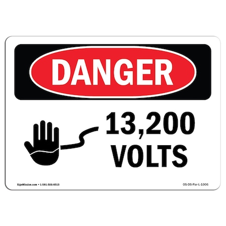 OSHA Danger Sign, 13200 Volts, 18in X 12in Rigid Plastic