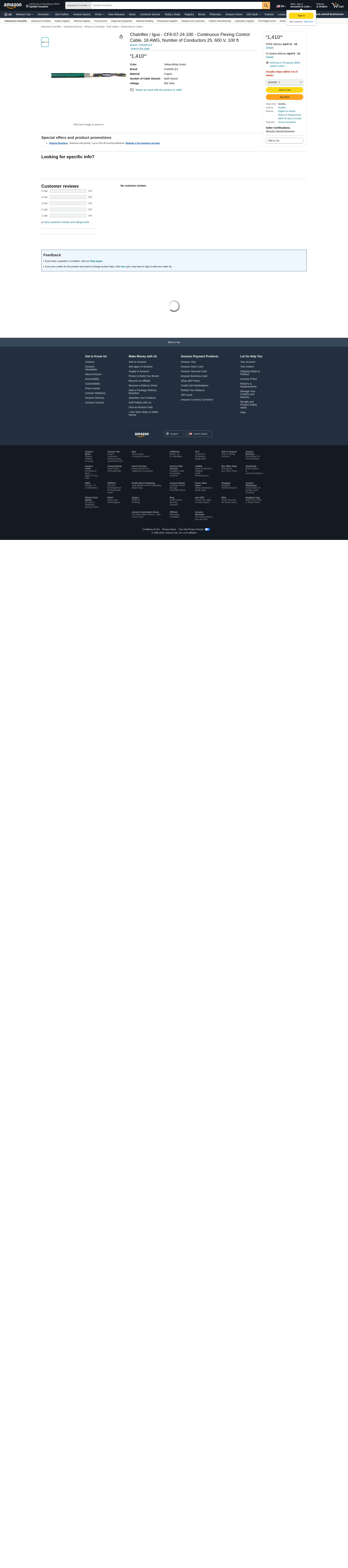 Continuous flexing control cable is electrical wire that connects power from an automated machine to moving components or processes within the machine that need to be controlled. It is designed for optimal flexibility to withstand the constant or frequent motion of moving machinery without damage. Flex control cable is typically used in manufacturing and robotic applications, such as powering and controlling a robotic arm. Continuous flexing automation cable is electrical cable that can withstand repetitive motion and constant bending without damage. It is commonly used in automated systems with constant movement, such as robotics or conveyors, to connect power from a main source to a machine or machine component. It has one or more insulated conductors and a flexible jacket that is oil-, flame-, and coolant-resistant. It is often used in conjunction with cable carriers, or trays, to support and guide cable through motion. Automation cable is suitable for construction, manufacturing, robotics, and power distribution applications. This listing is for each. Technical Specification Item Continuous Flexing Control Cable Wire Size 18 AWG Number of Conductors 25 Length 100 ft Voltage 600 V Nominal Outside Dia. 0.71 in Jacket Color Green Wire Color (1) Green/Yellow, Black with White Numbers Min. Bend Radius 7.5 x OD Shielding Shielded Conductor Material Copper Jacket Material PVC Temp. Rating 23 Degrees to 158 Degrees F Special Features Oil Resistant and Flame Resistant Standards cRUus/ CE