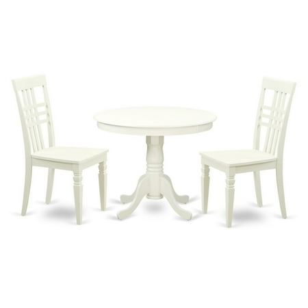 East West Furniture ANLG3-LWH-W Dining Set - 1 Kitchen Table & 2 Wood Chairs, Linen White - 3 Piece