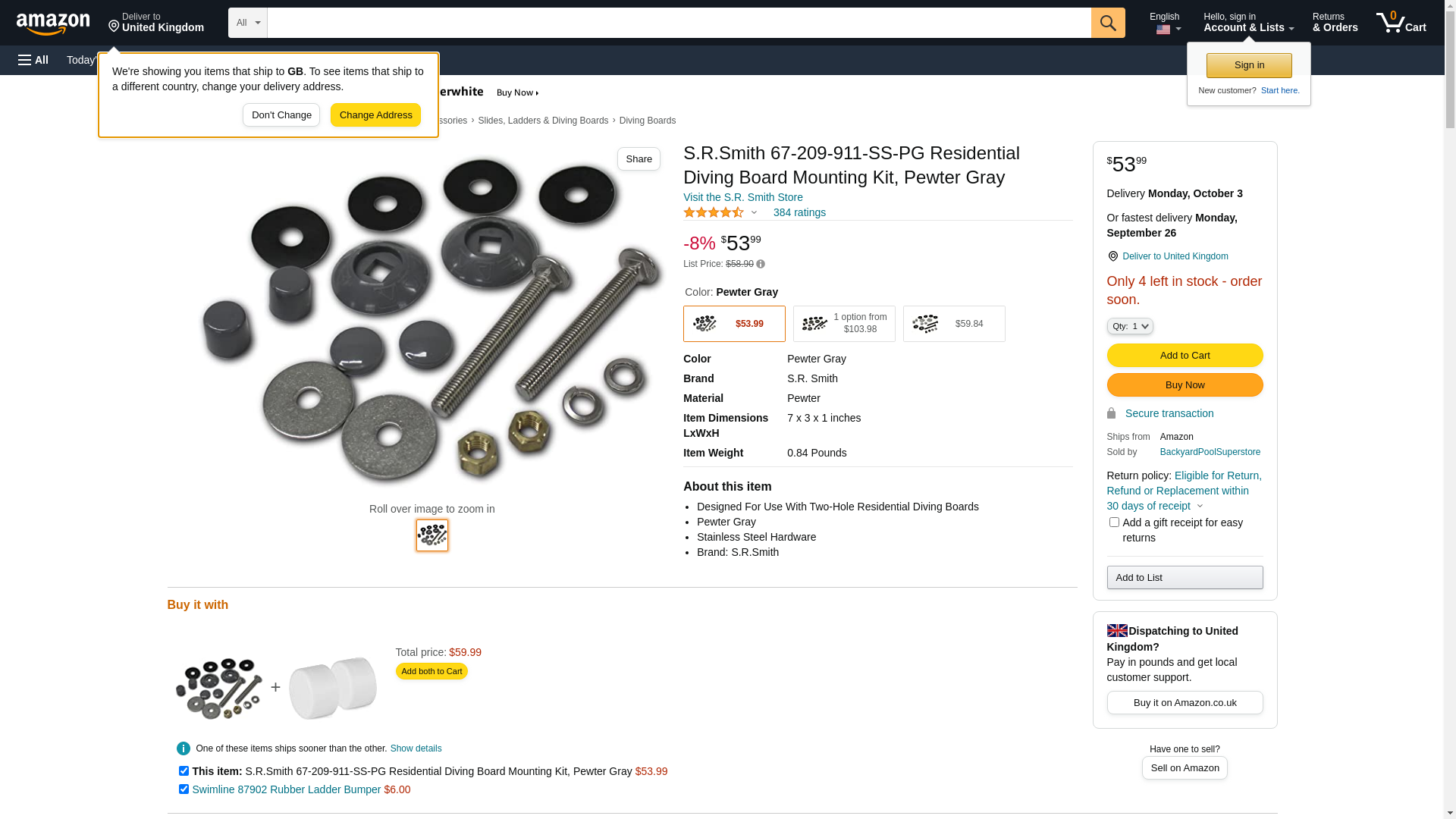 S.R.Smith 67-209-911-SS-PG Residential Diving Board Mounting Kit, Pewter Gray