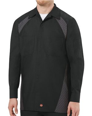 Red Kap B44330655 Long Sleeve Diamond Plate Shop Shirt, Navy & Diamond Plate - Large