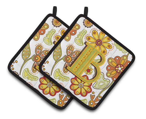 Carolines Treasures CJ2003-BPTHD Letter B Floral Mustard & Green Pair of Pot Holders, 7.5 x 3 x 7.5 in.
