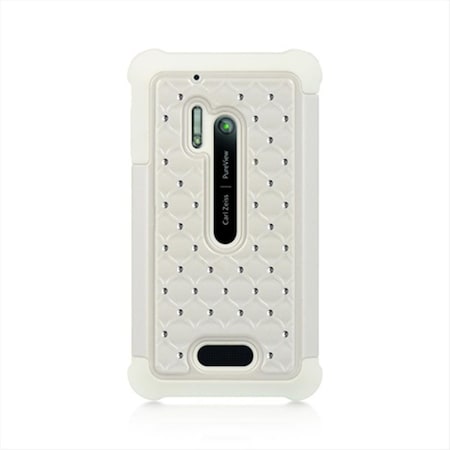 Dream Wireless Compatible Hybrid Diamond Decor Case for Nokia Lumia 928 - Retail Packaging - White/White