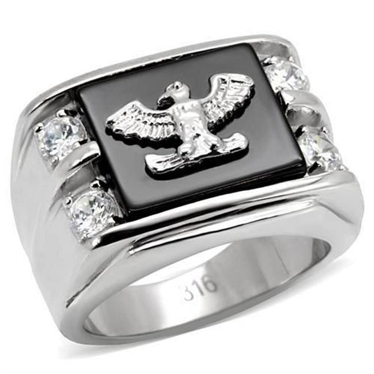 Alamode TK02221-13 Men High Polished Stainless Steel Ring with Semi-Precious in Jet - Size 13