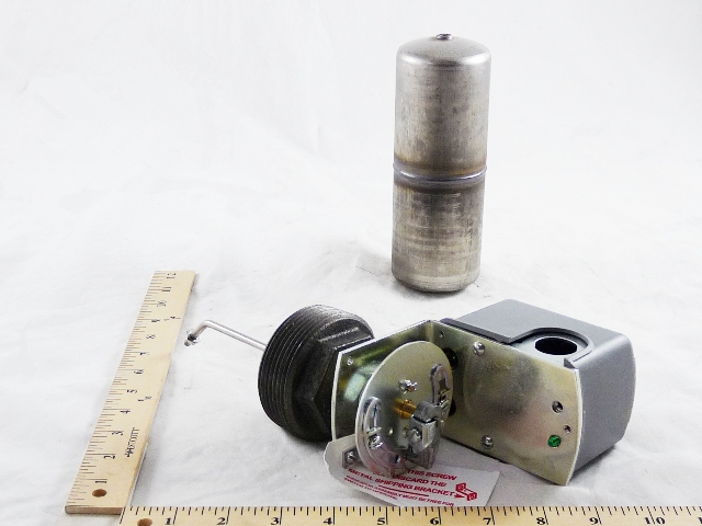 This liquid level switch mounts horizontally. It is designed to automatically control the liquid level in closed tanks.<br /><br /> Item: Tank Liquid Level Switch<br /> Switch Function: Close On Rise<br /> Mounting: Side<br /> Float Position: Left<br /> Float Rod Angle: 90 Degrees<br /> Float Travel: 4-1/2"<br /> Tank Connection Size: 2-1/2" MNPT<br /> NEMA Rating: 1<br /> Contact Form: DPST<br /> Operating Temp. Range: 250 Degrees F Max<br /> Max. Pressure: 50 psi<br /> Overall Length: 16.06"<br /> Float Material: Stainless Steel<br /> Float Length: 7.13"<br /> Float Dia.: 2.58"<br /> Stem Material: Stainless Steel<br /> Stem Length: 4.37"<br /> Height: 5.98"<br /> Width: 2.88"<br /> Max. Current: 600A<br /> Max. Voltage: 600<br /> HP @ 1 Phase - 120V: 2<br /> HP @ 1 Phase - 240V: 3<br /> HP @ 3 Phase - 240V: 5<br /> Body Material: Steel<br /> Conduit Size: 3-1/2"<br /> Electrical Connections: Screw Clamp<br /> Features: Viton Packing, Suitable for Applications Up To 250 Deg<br /> Includes: Viton Packing - Rod and Float<br />