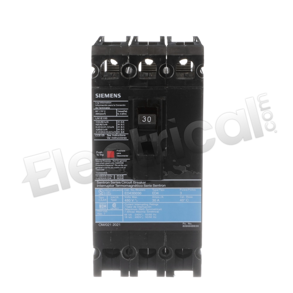 ED43B030L - Siemens / Ite / Gould - Ed, 30 Amp, 3 Pole, 480 Volt, Molded Case Circuit Breakers From Siemens / Ite