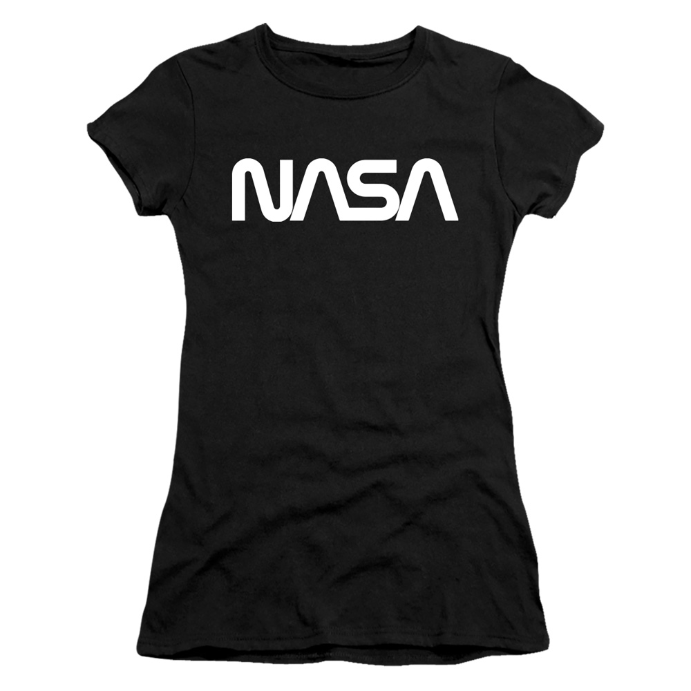 Trevco NASA143B-JS-4 NASA & Worm Logo-Short Sleeve Juniors Sheer T-Shirt, Black - Extra Large