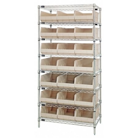 Quantum Storage Wire Shelving, 8Shelves, 21Bins, Ivory - WR8-445IV