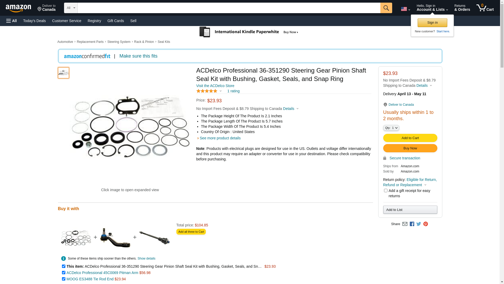 ACDelco Professional 36-351290 Steering Gear Pinion Shaft Seal Kit with Bushing, Gasket, Seals, and Snap Ring