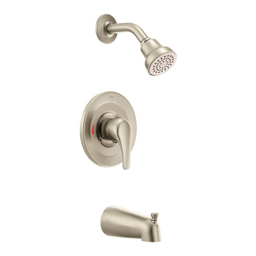 Standard Plumbing Supply - Product: Moen Cornerstone 40311VBNGR Cornerstone 1.75 GPM Single Handle Pressure Balance Tub and Shower Faucet Trim Kit, Brushed Nickel