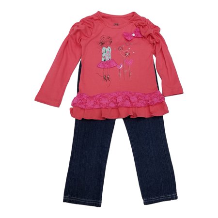 <ul> <li>Trendy denim pants outfit from Young HT</li> <li>Top with gathered sleeves, flower girl applique, bowtie accent and mesh ruffles</li> <li>Blue denim pants ensure a chic street casual look</li> <li>100% Cotton. Machine wash</li> <li>Sizing is based on U.S. clothing size standards</li> </ul>