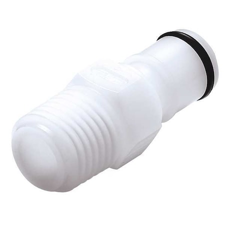 'Inline Insert, Tube Fitting Material Acetal, Pipe Size - Pipe Fitting 3/8 In., APC Series, Shut-Off, Coupling Size 1/4 In., Max. Pressure 120 psi, Temp. Range -40 Degrees to 180 Degrees F, Length 1.5 In., Body Dia. 0.63 In., Color White, For Use With APC Couplers, Standards NSF 61, NSF 51, FED 209E'