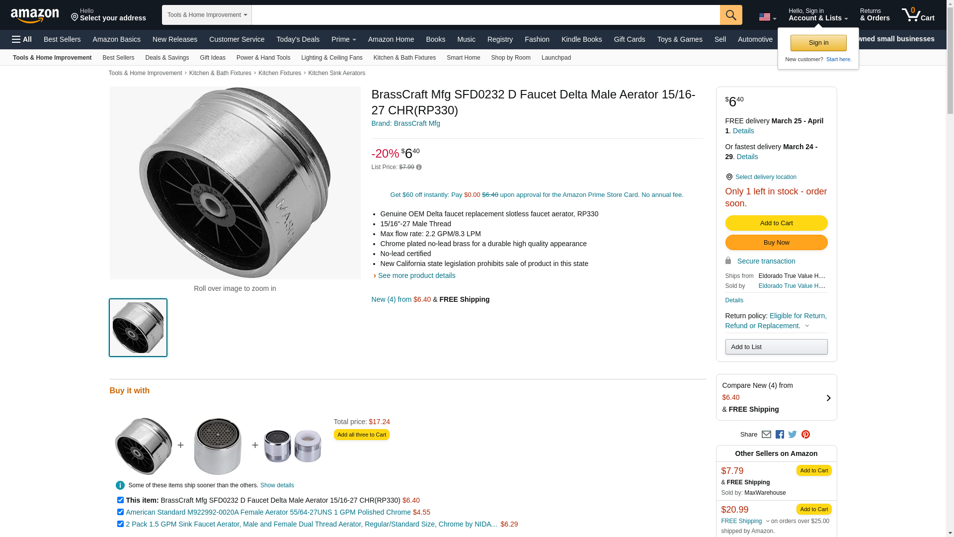 BrassCraft Mfg SFD0232 D Faucet Delta Male Aerator 15/16-27 CHR(RP330)
