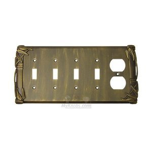Bamboo Collection - Bamboo Switchplate Combo Duplex Outlet Quadruple Toggle Switchplate in Black with Copper Wash by Anne at Home - 5018U-733 | MyKnobs