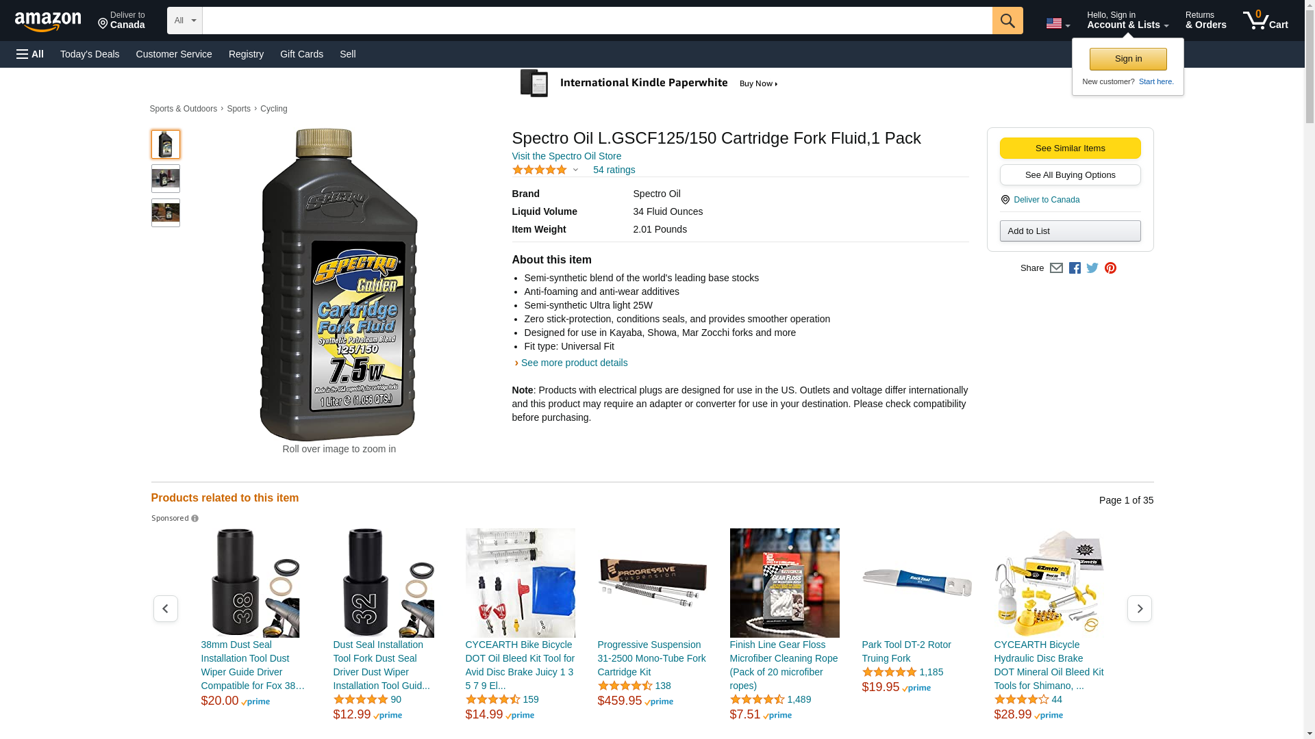Spectro Oil L.GSCF125/150 Cartridge Fork Fluid,1 Pack