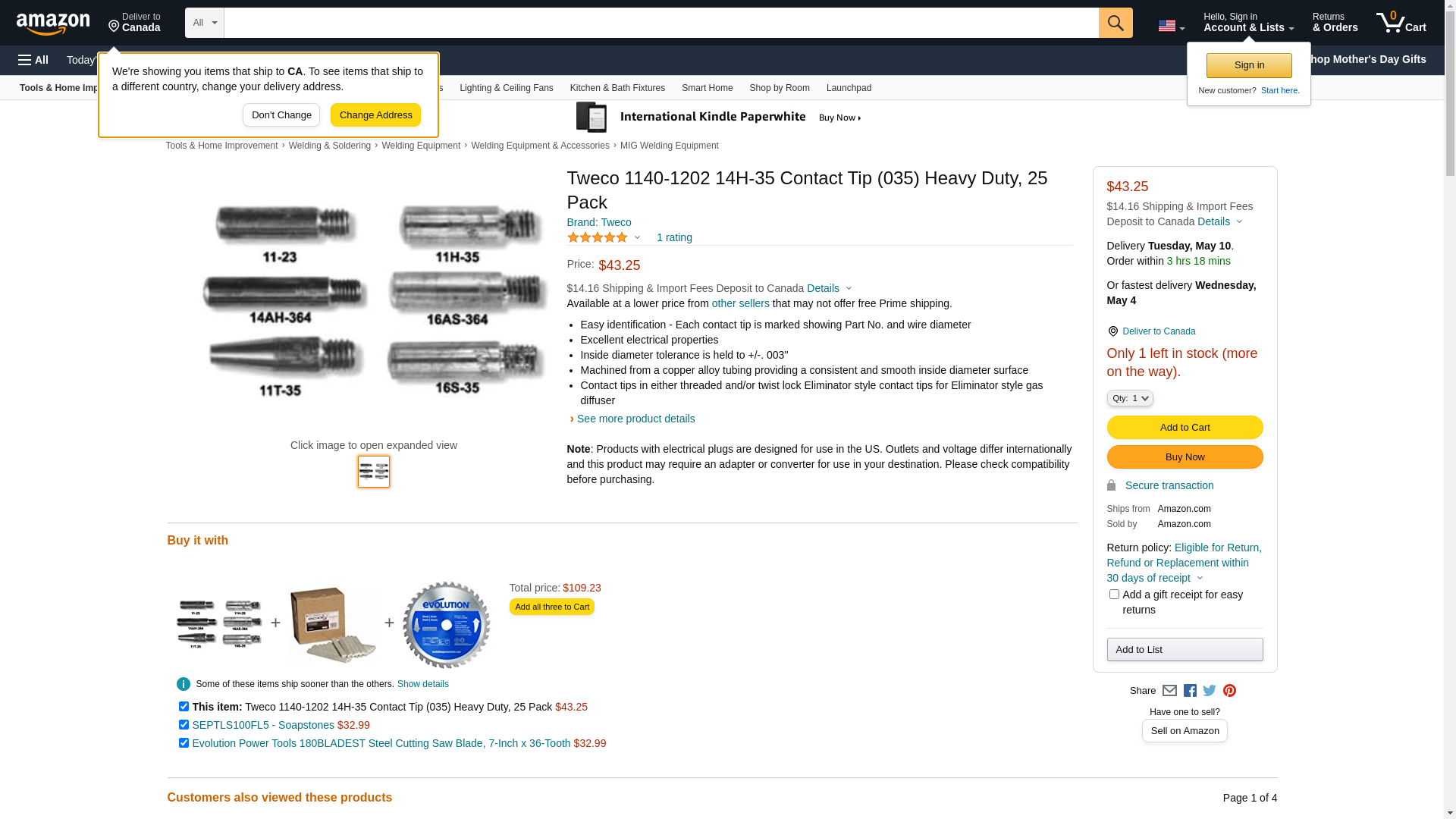 Tweco 1140-1202 14H-35 Contact Tip (035) Heavy Duty, 25 Pack