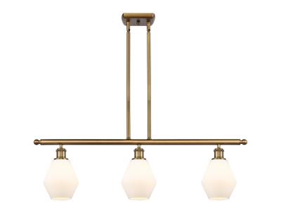 This 3 light Island Light from the Ballston Cindyrella collection by Innovations Lighting will enhance your home with a perfect mix of form and function. The features include a Brushed Brass finish applied by experts. Product Features Include: Brand: Innovations Lighting, Collection: Ballston Cindyrella, SKU: 516-3I-BB-G651-6-LED, UPC: 729625126109, Category: Island Light, Finish: Brushed Brass, Glass: Cased Matte White Cindyrella 6, Material: Steel/Cast Brass/Glass, Designer: Bruno Marashlian, Width: 36.00 in., Height: 10.75 in., Max Height: 43.75 in., Extension/Depth: 6.00 in., Backplate/Canopy Width: 4.50 in., Backplate/Canopy Length: 6.00 in., Backplate/Canopy Thickness: 0.75 in., Weight: 11.25 lb., Included Chain/Rods/Cord: 2-6 and 4-12 inch stems, Included Lead Wire: 120.00, Warranty: 2 Year Finish, Lifetime Electrical, Bulbs Included: Yes, Bulb Category: LED, Primary Bulb(s): 3 x 6.00 watts Medium Base ST64, Color Temperature: 2700K, Color Rendering Index: 82.0000, Total Lumens: 600, Voltage: 120, Safety Rating: UL/ETL Damp Location, Title 20 Approved
