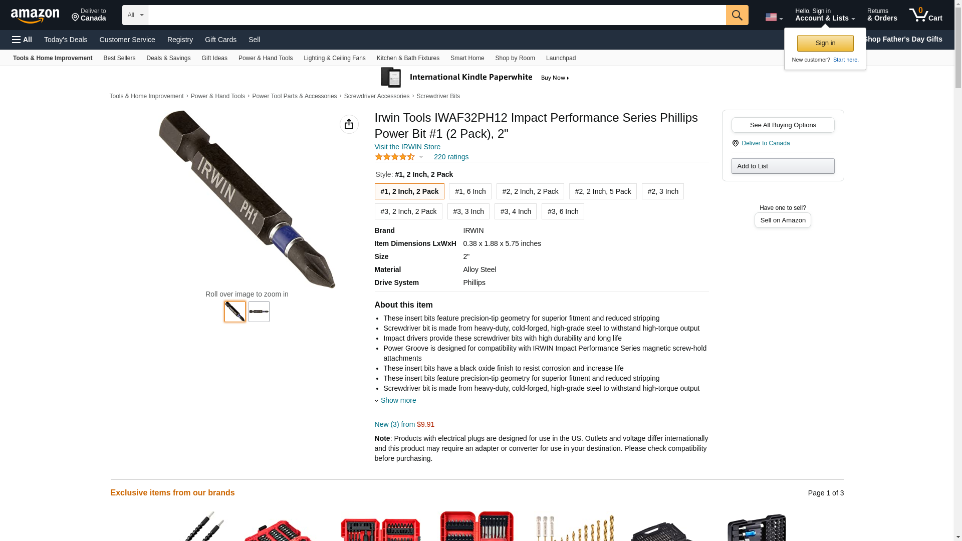 Irwin Tools IWAF32PH12 Impact Performance Series Phillips Power Bit #1 (2 Pack), 2"