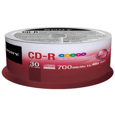 Sony 30CDQ80XP CD-R 48X 80 min/700MB Color Spindle Compact Disc, 30-Pack