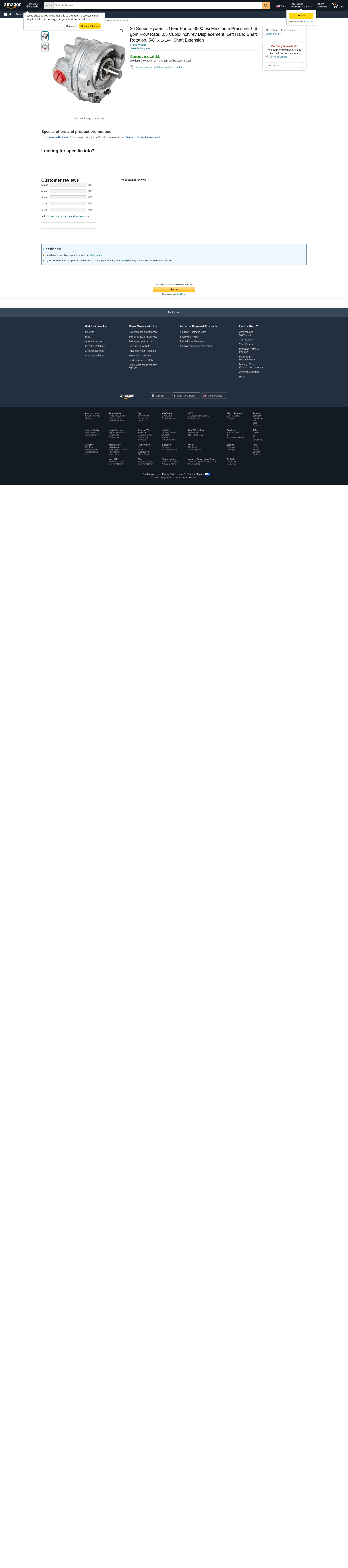 Vickers 26 Series Hydraulic Gear Pump, 3500 psi Maximum Pressure, 6.6 gpm Flow Rate, 0.5 Cubic-inch/rev Displacement, Left Hand Shaft Rotation, 5/8" x 1-1/4" Shaft Extension