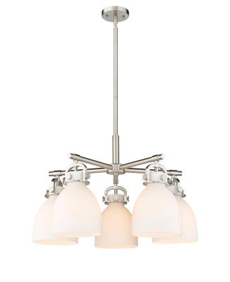 Innovations Lighting 410-5CR-SN-G412-7WH Newton Bell - 5 Light Chandelier in Industrial Style-16 Inches Tall and 26 Inches Wide, Finish Color: Satin Nickel, Glass Color: Matte White