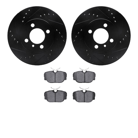 8502-31018, Rotors-Drilled and Slotted-Black with 5000 Advanced Brake Pads, Zinc Coated