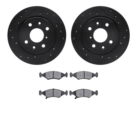 8602-21000, Rotors-Drilled and Slotted-Black with 5000 Euro Ceramic Brake Pads, Zinc Coated