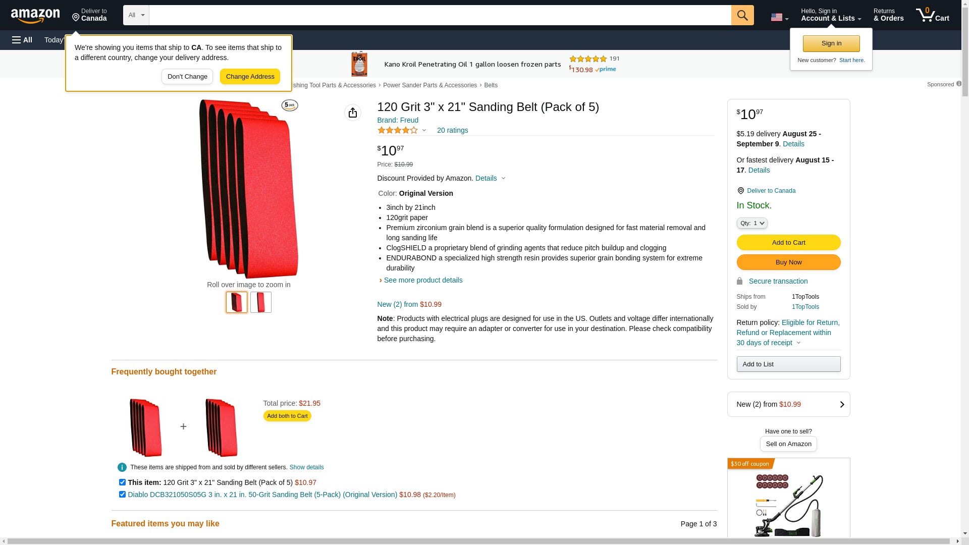 120 Grit 3" x 21" Sanding Belt (Pack of 5)