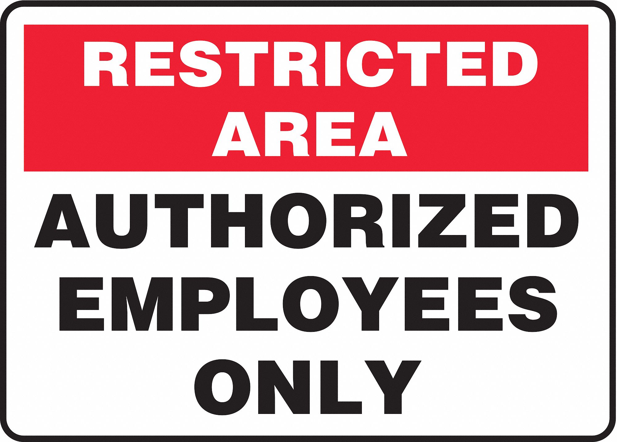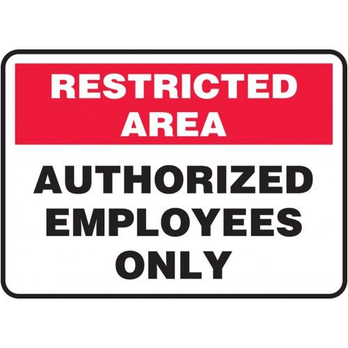 Accuform MADC520VA, 10" x 14" Restricted Area Safety Sign "Authorized Employees Only" Aluminum Features Stands up indoors and out Thin enough to conform to curved surfaces .032 inches thick for strength and flexibility Finished with four mounting holes