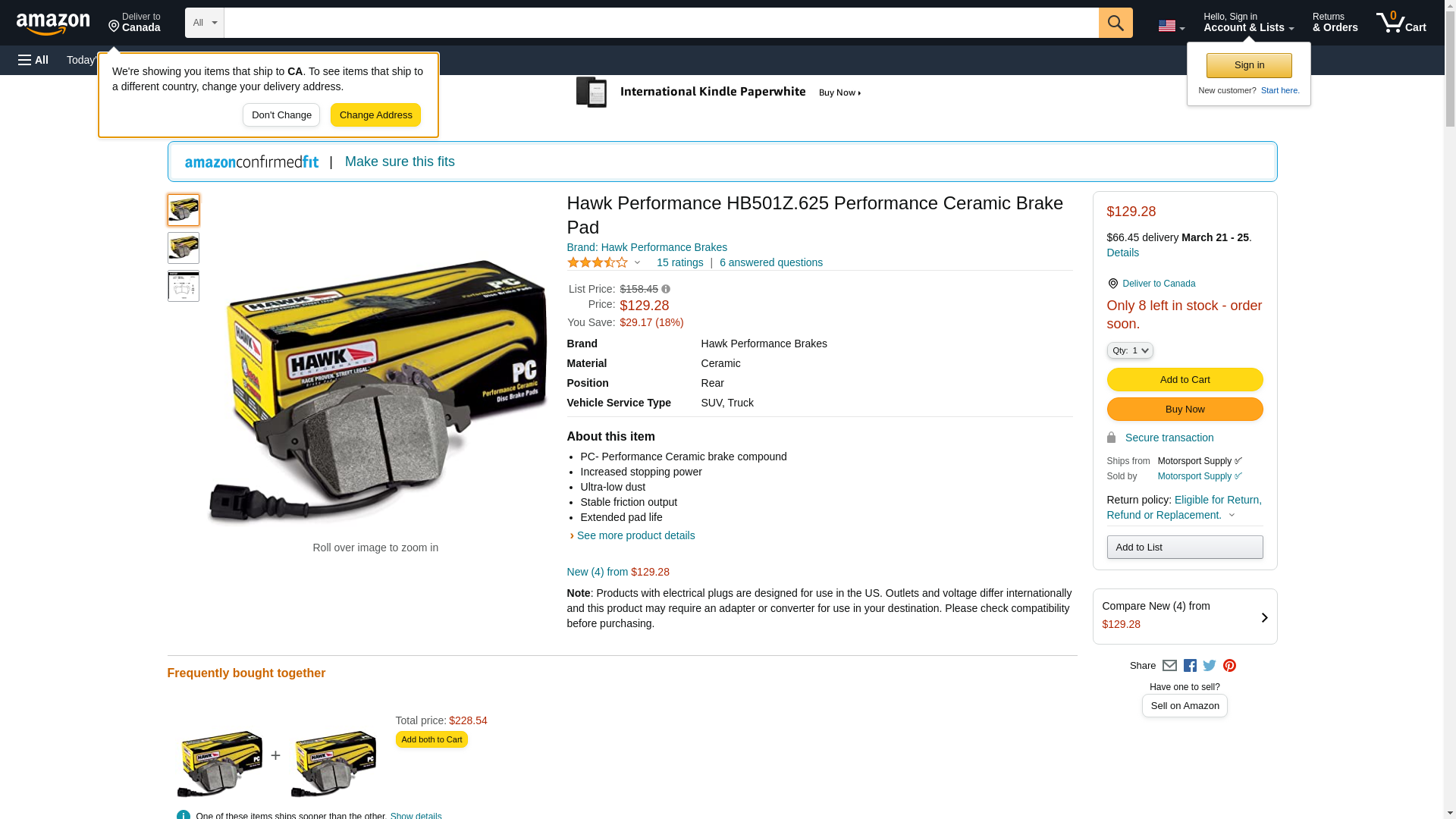 Hawk Performance HB501Z.625 Performance Ceramic Brake Pad