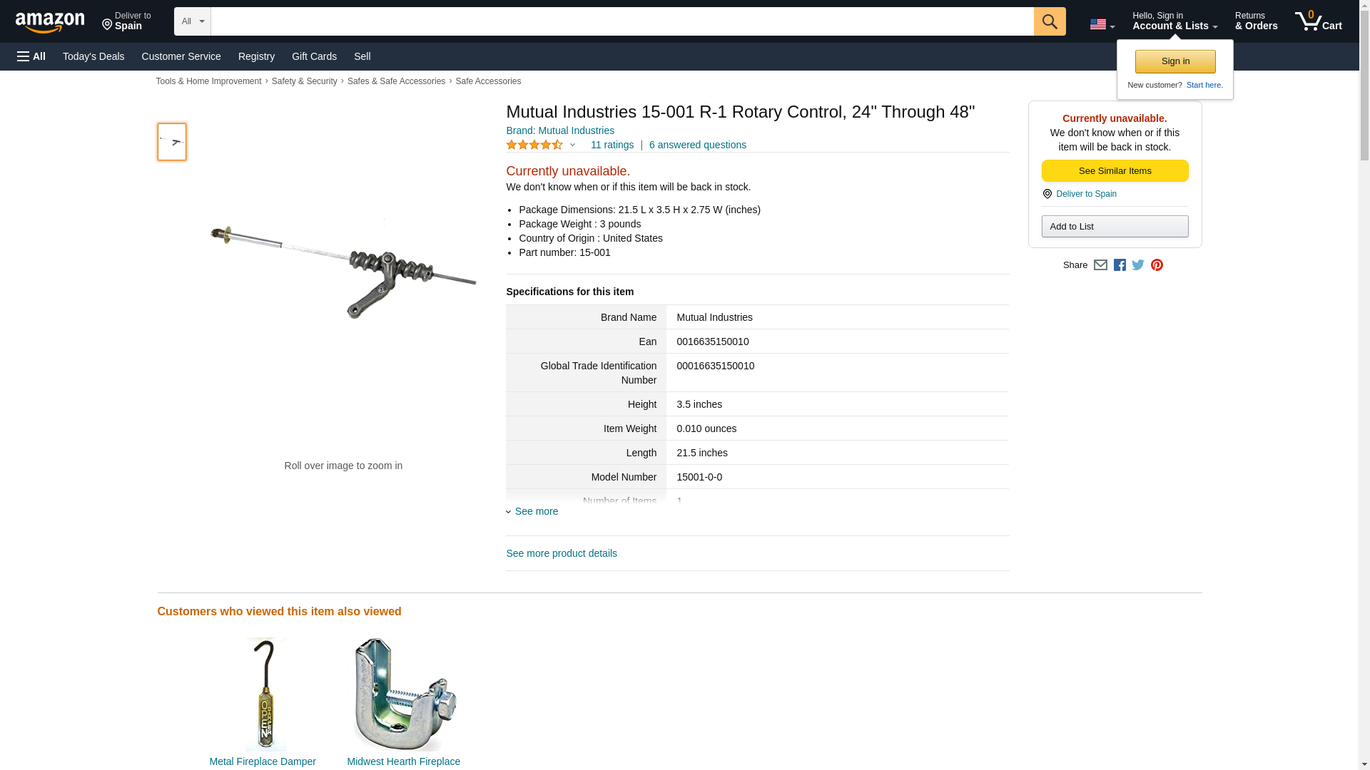Mutual Industries 15-001 R-1 Rotary Control, 24" Through 48"