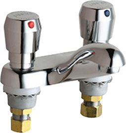 Chicago Faucets #802-V665CP Chrome 2-Handle Deck-Mount Metering Lavatory Faucet with 4" Integral Spout - PHWarehouse.com