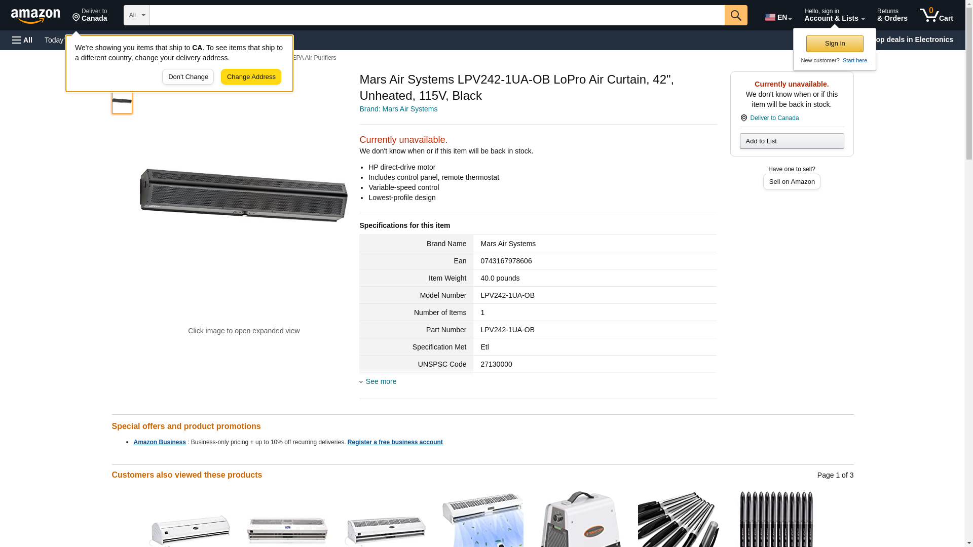 Mars Air Systems LPV242-1UA-OB LoPro Air Curtain, 42", Unheated, 115V, Black