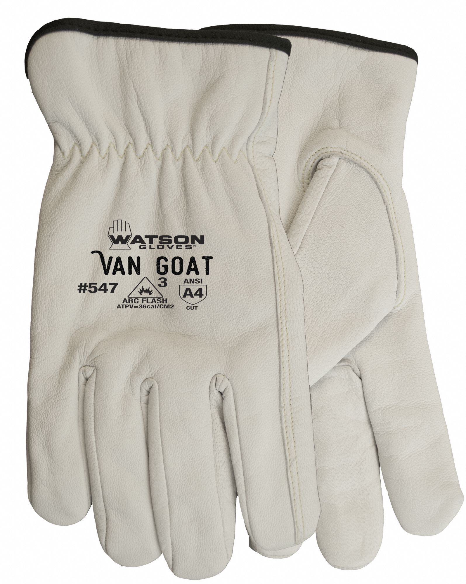 CUT-RESISTANT GLOVES, SLIP-ON CUFF, GUNN CUT, XXL/11, WHITE, 10 IN L, GOATSKIN LEATHER