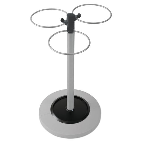 Add style to your reception area. This practical and modern umbrella stand contains three large compartments, three small hooks, and a weighted base with water retainer. High capacity, the three large compartments can hold up to nine large umbrellas and three small hooks for pocket-size umbrellas. Ultra-fast drying thanks to open-air structure. Quick and easy assembly without tools. Water-retaining base empties and cleans easily. Weighted base for good stability. Mounting: Stand Alone; Width: 13 3/4"; Depth: 13 3/4"; Height: 25 1/2".