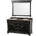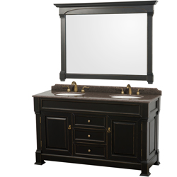Andover 60" Double Vanity in Black, Imperial Brown Granite Top, Undermount Oval Sinks, 56" Mirror