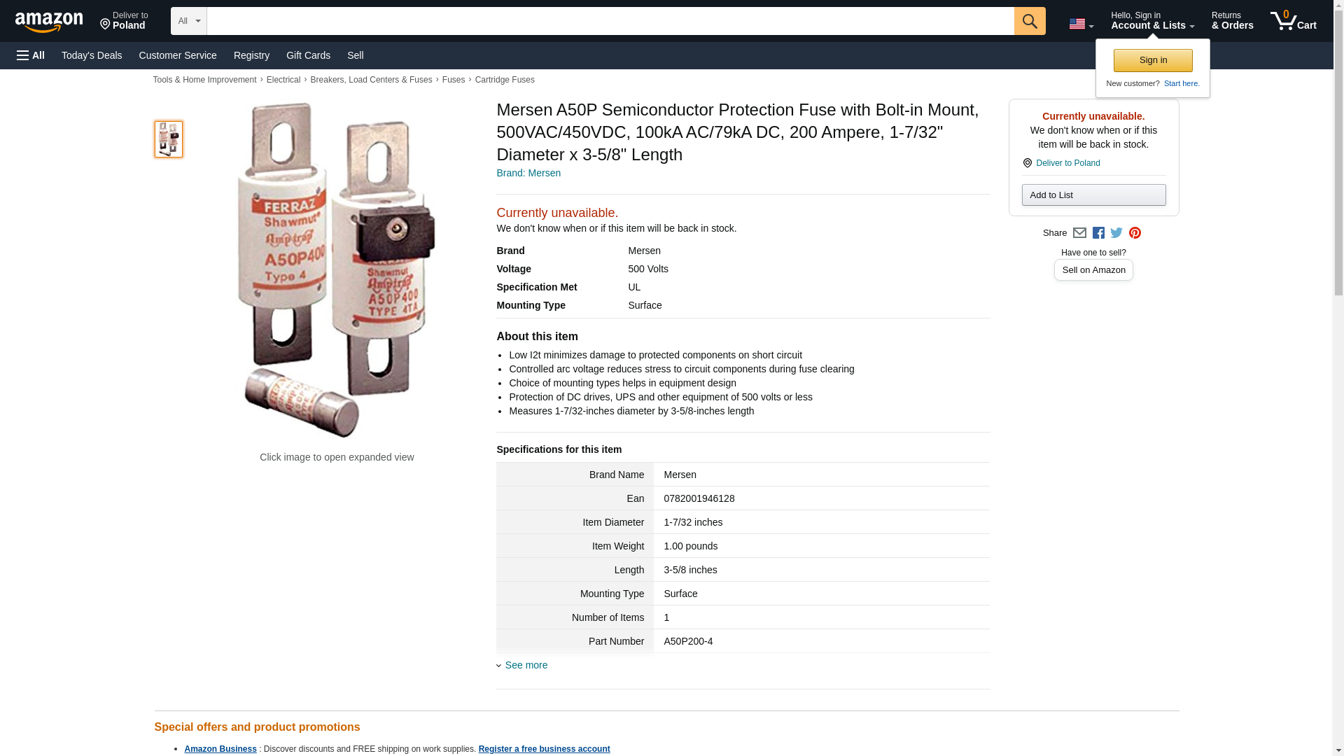 Mersen A50P200-4 500V 200A Semicond Fuse, 5-Pack