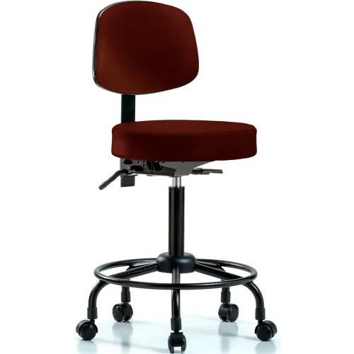 Ergonomic Stool with Fixed Foot Ring - Vinyl - Burgundy