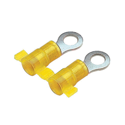 - Nylon-insulated ring terminal reel for use with solid or stranded copper wire from #12 to #10 AWG (4 to 6 sq. mm) and 1/4" (M6) studs