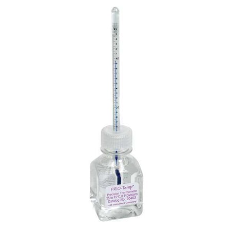 Bottle Thermometer, Application Incubators, 15 Degrees to 30 Degrees C, Clear Organic Liquid, Bottle Fill Enviro-Safe(R) Liquid - 60 mL, NIST-Traceable, PFA-Coated Glass, 5 mm W x 145 mm H, Celsius, PFA-Coated