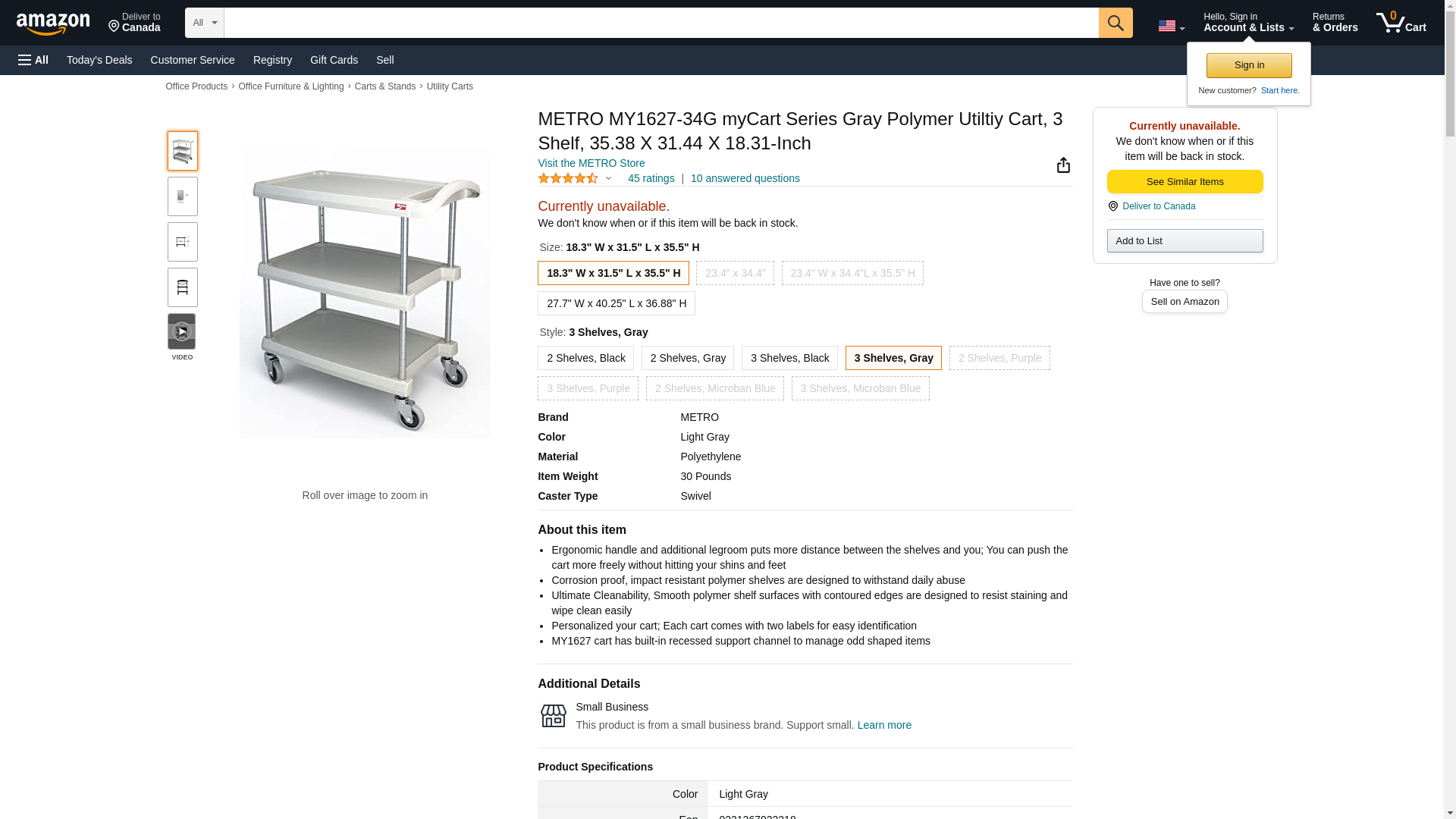 METRO MY1627-34G myCart Series Gray Polymer Utiltiy Cart, 3 Shelf, 35.38 X 31.44 X 18.31-Inch