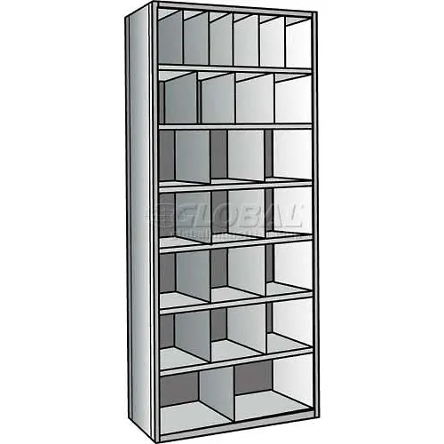 Hallowell A5534-12HG Hi-Tech Metal Bin Shelving, 36" Width x 12" Depth x 87" Height, 6-Add-On Unit with 6" Width x 12" Height,, (4) 9" Width x 12" Height,, (12) 12" Width x 12" Height,, (2) 18" Width x 12" Height Bins, 725 Gray