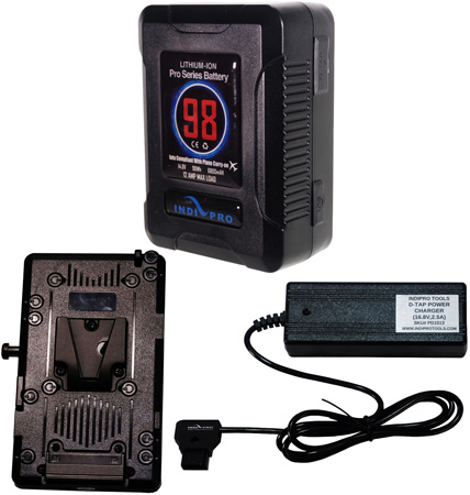 Keep your Blackmagic URSA powered with the <strong>MSBMUKT</strong> V-Mount Battery, Plate & Charger Kit from IndiPro Tools. Included in this kit is a Micro-Series 98Wh Lithium-Ion V-Mount battery and D-Tap Pro Battery Charger along with a Blackmagic URSA battery plate. The plate incorporates an V- Lock that connects directly to the back of the URSA, avoiding the need for extra cabling. The following is a more in depth breakdown of the items in this exclusive kit.</p><p>The Micro-Series 98Wh V-Mount Li-Ion Battery from IndiPRO Tools outputs 14.8V, has a capacity of 6.6Ah, and supports up to a 12A draw. It contains one of the industry's top battery cells which are ideal for pro video cameras, lighting and monitors. With the weight of slightly more than 1.5 pounds and the dimensions of only 4.7x3.6.x2.1 this compact battery is perfect for filmmakers on the go. Its features a standard D-Tap port for powering accessories via a separately available cable as well as built-in USB interface which provides the ability to charge electronic devices during the shoot. This is an IATA carry-on approved battery, simplifying your travel options. For quick status checks, an integrated 5-bar LED gauge displays the battery's remaining power. This battery has a 2 Year limited warranty against all manufacturer defects.</p><p>The D-Tap Pro Battery Charger from IndiPRO Tools is designed to charge batteries with D-Tap connectors that can be charged via the D-Tap. These include select V-Mount, Gold Mount, or IndiPRO PD style batteries. This charger is lightweight and compact in size and offers 16.8V output. This V-Mount Battery Plate for Blackmagic Design URSA/URSA Mini allows you to attach third party V-Mount batteries to your URSA/URSA Mini camera. The V Lock connects directly to the back of the URSA, avoiding the need for extra cabling.</p>