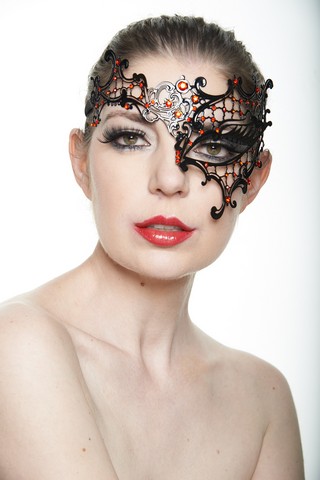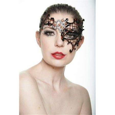 Kayso L2007RDBK Phantom of the Opera Inspired Black Laser Cut Mask with Red Rhinestones